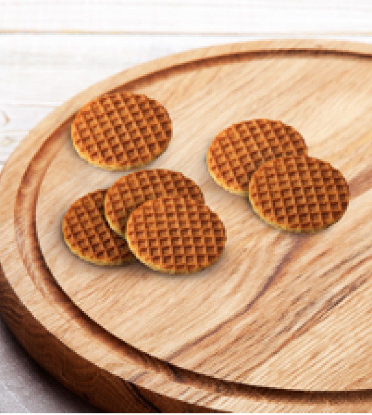 Biscuit International ofrece una amplia gama de stroopwafels con diferentes variedades y formas que incluyen: