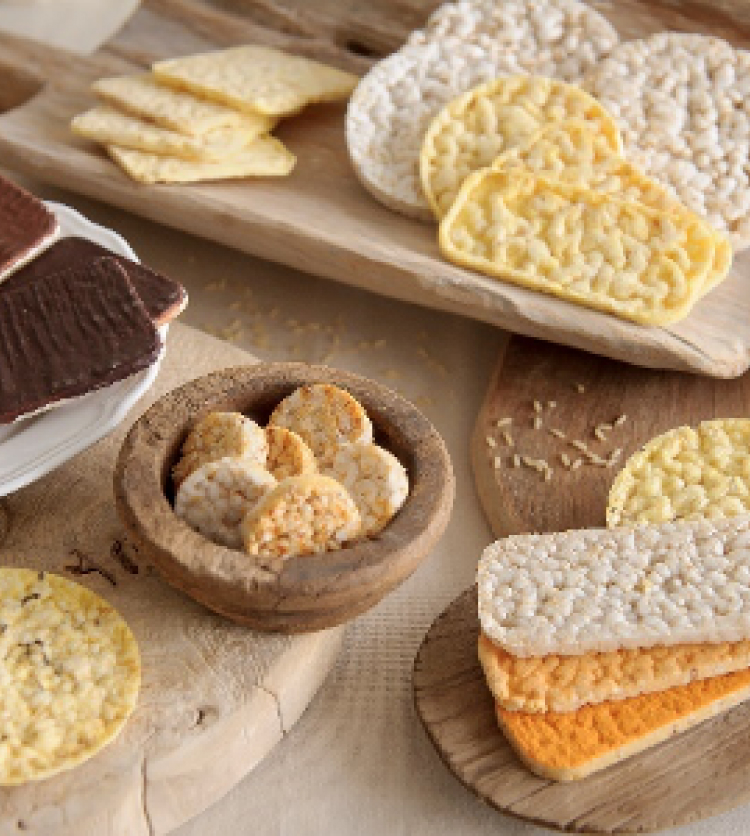 Biscuit International propose une large gamme de galettes de riz et de maïs dans différentes variétés et formes, notamment :